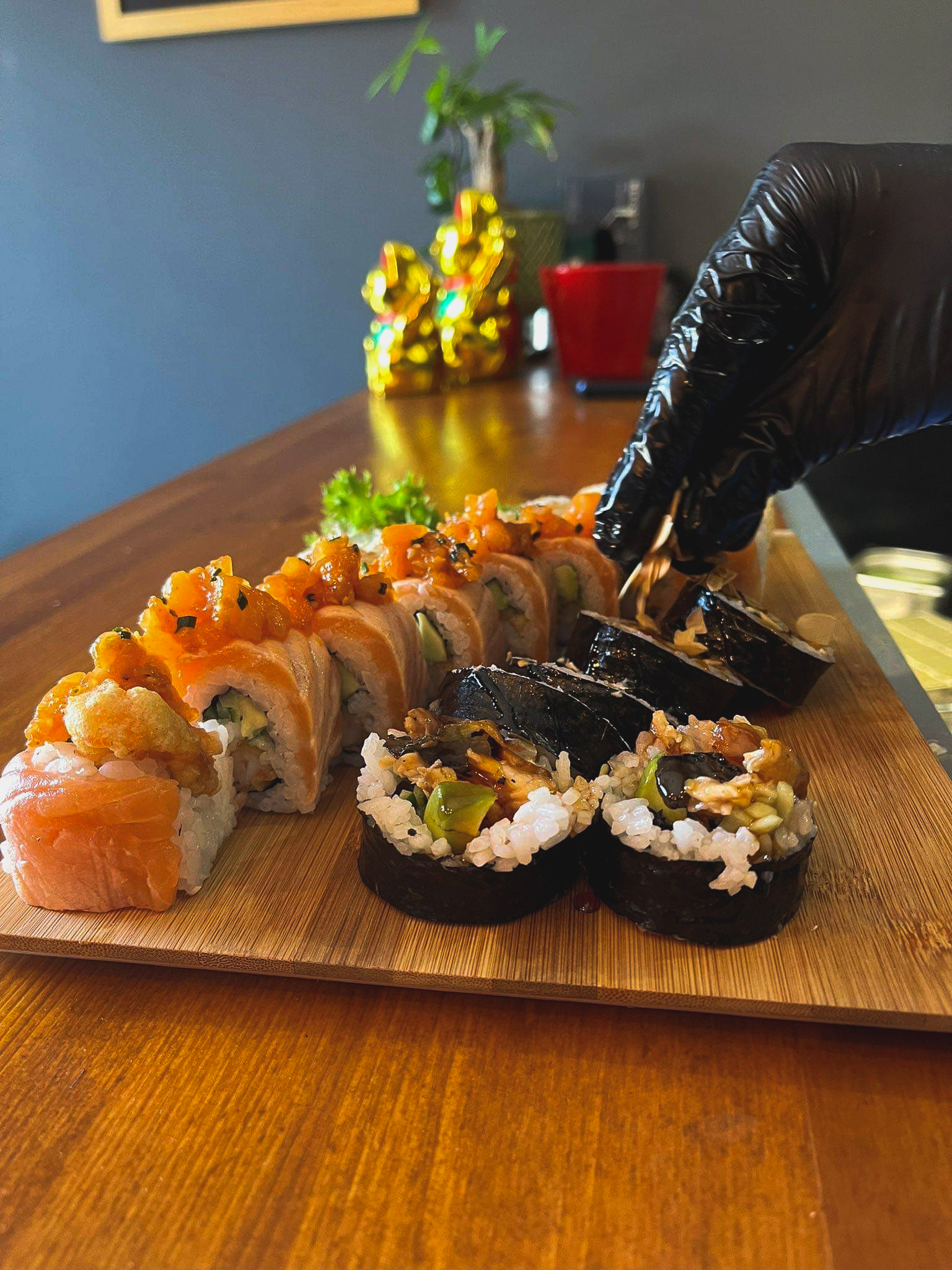 W menu znajdziecie szeroki wybór — od klasycznych nigiri i hosomaki, przez bogate futomaki i zestawy premium, aż po pyszne wege-rolki i dania dla najmłodszych.